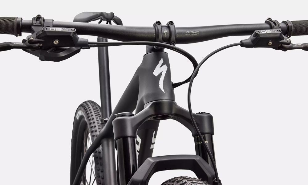 On the Epic Hardtail Comp, RockShox's long-beloved SID SL fork is tasked with handling suspension duties, while a full SRAM Transmission groupset leaves no doubts about why it sets the benchmark for accessible performance.