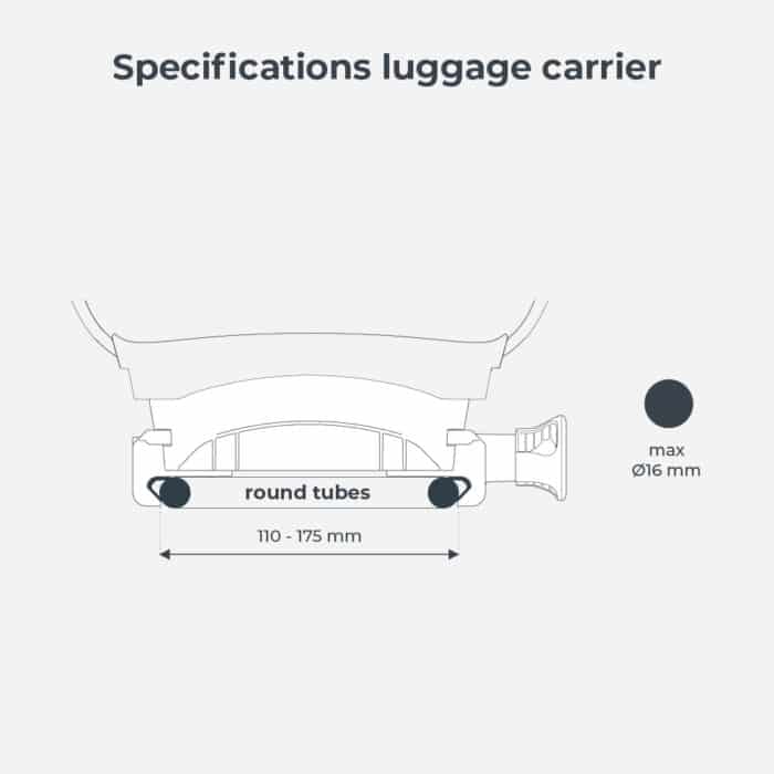 • Suitable for luggage carriers (120 mm – 175 mm)