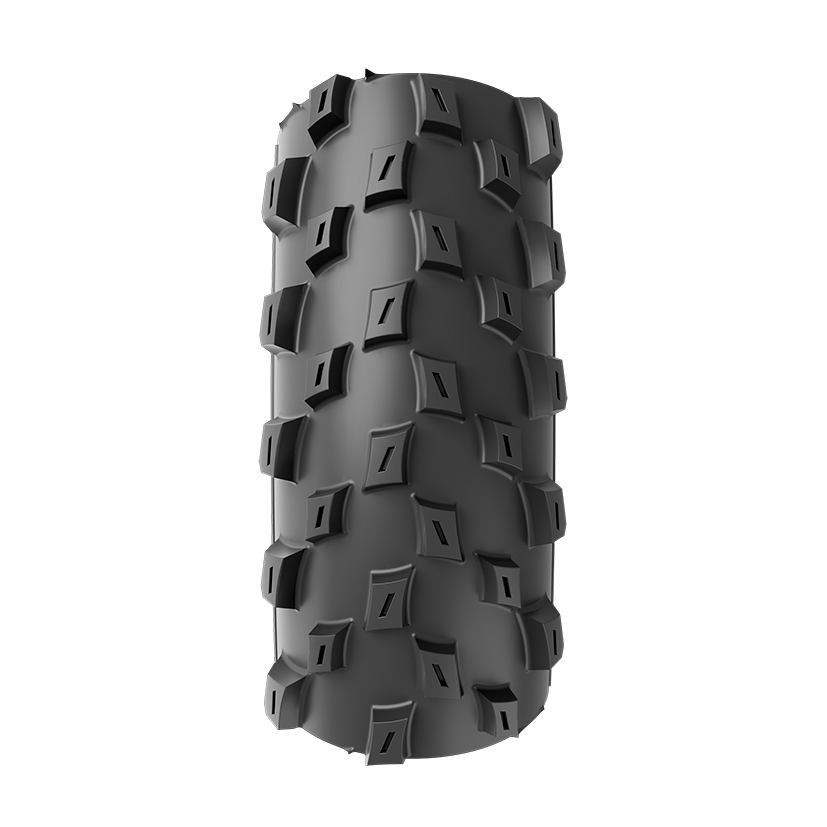 The alternating center knobs roll fast, and moto-style shoulder knobs bite hard while cornering. Siping throughout increases grip under lateral loads, helping to maintain speed across terrain of all types, and spacious knob placement sheds mud and loamy soil.