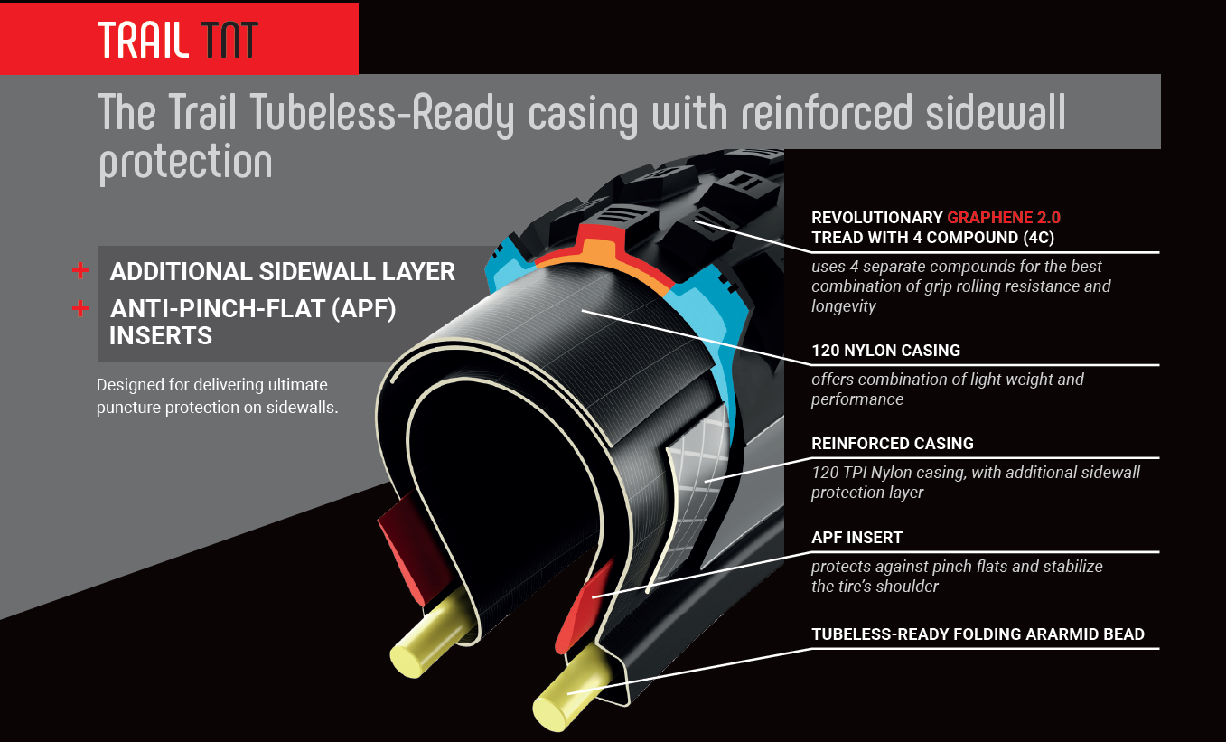 • 4c Graphene 2.0 compound reduces rolling resistance, increasing range and battery life.
