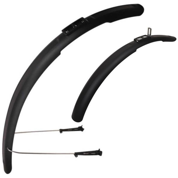 The Trail 65 is a set of mudguards for front and rear wheels. The mudguards fit 26’’, 27.5’’ & 29’’ bikes, and tyres with a width of up to 60mm (2.4"). The Trail 65 is the widest mudguard in the Trail range. The rear blade has an adjustable double stay which guarantees reinforced vibration-free fixture.